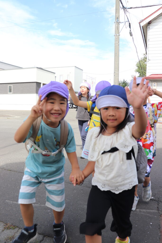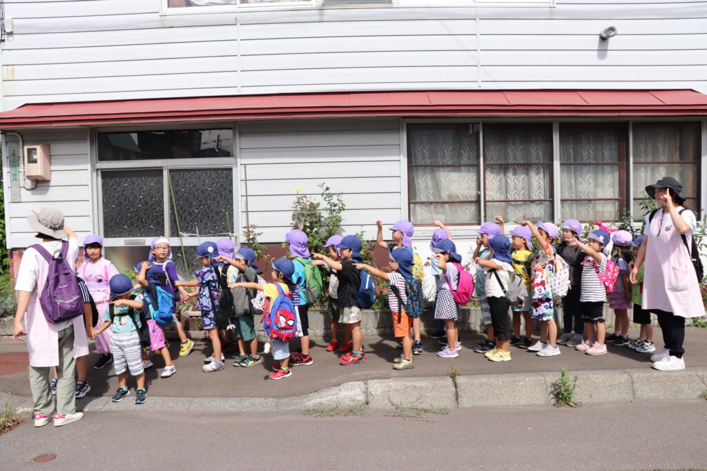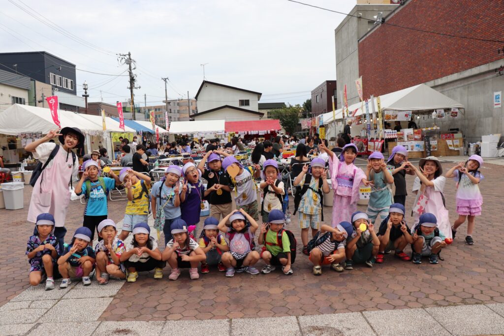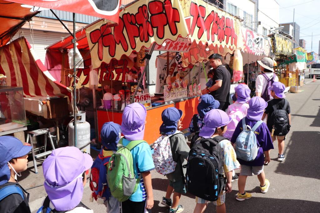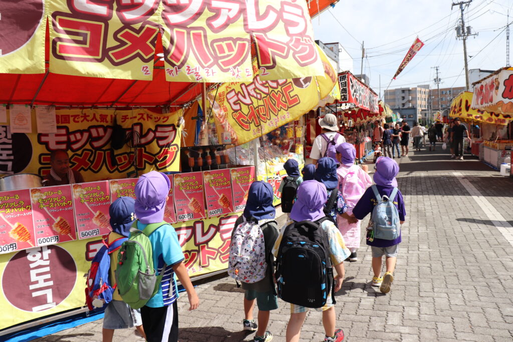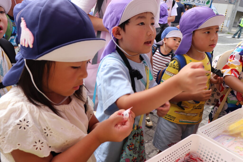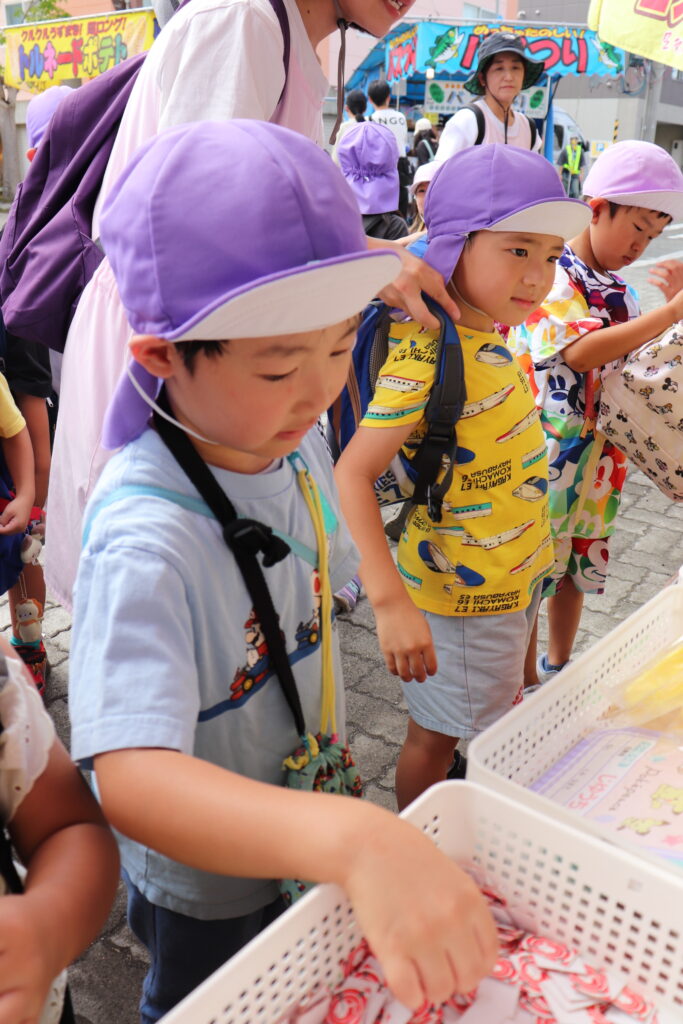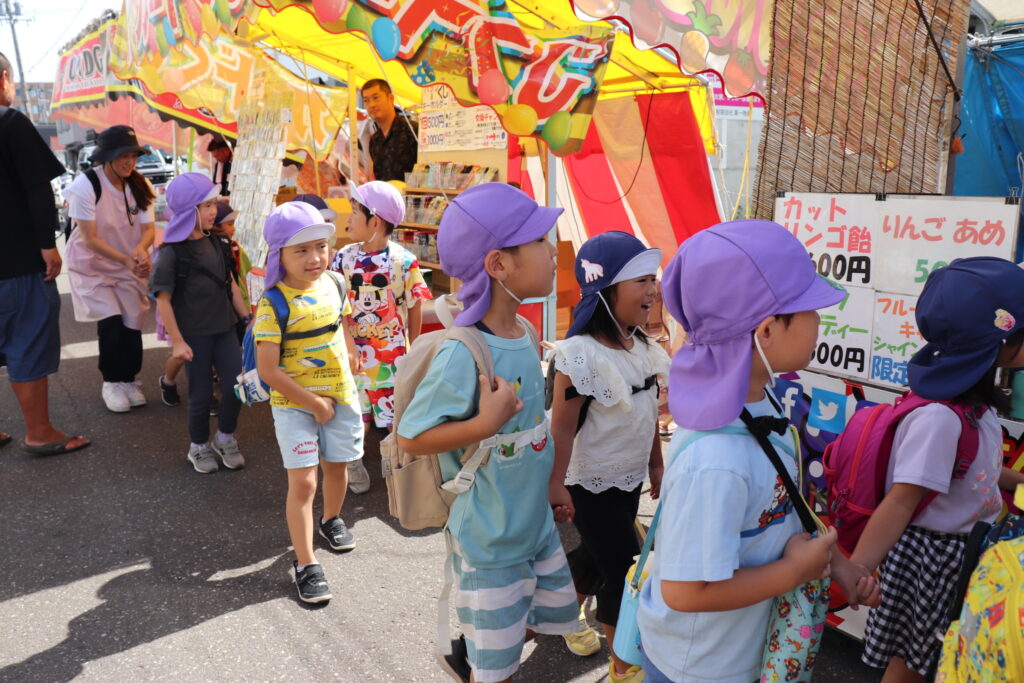 地域のお祭り見学につき組さんとにじ組さんで行ってきました。