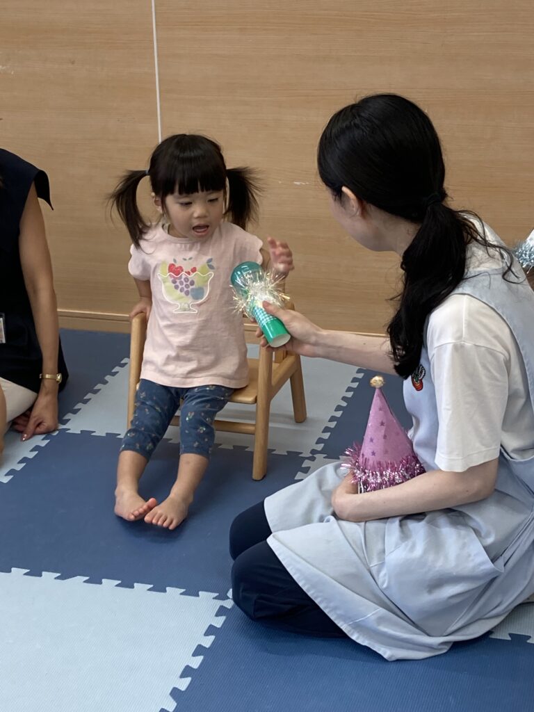 6月に体調不良でお誕生会ができなかったおともだちも、7月には一緒に参加することができました!