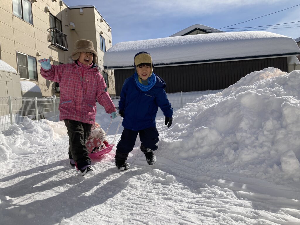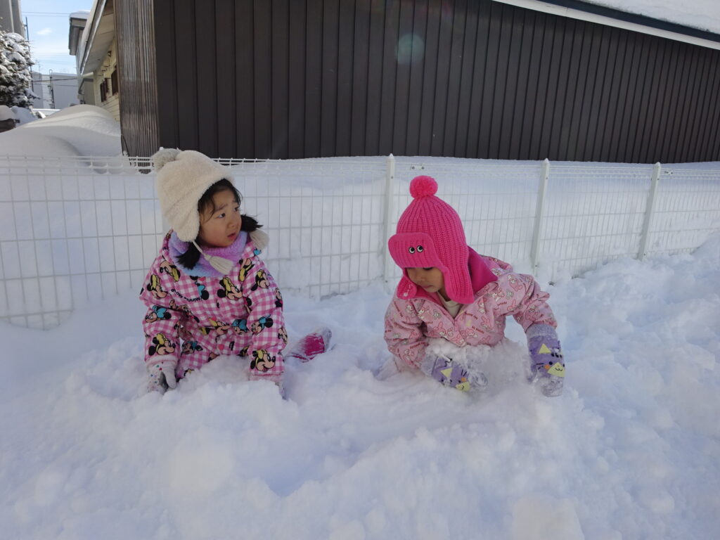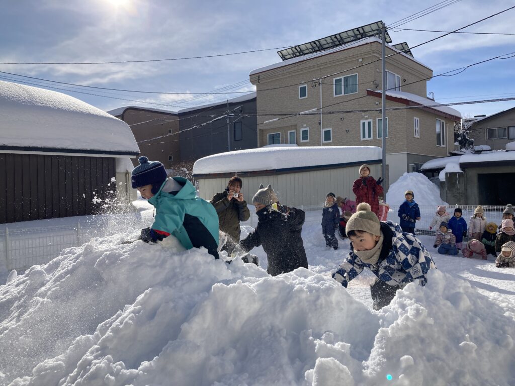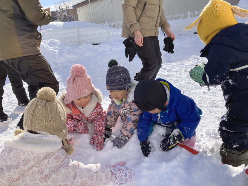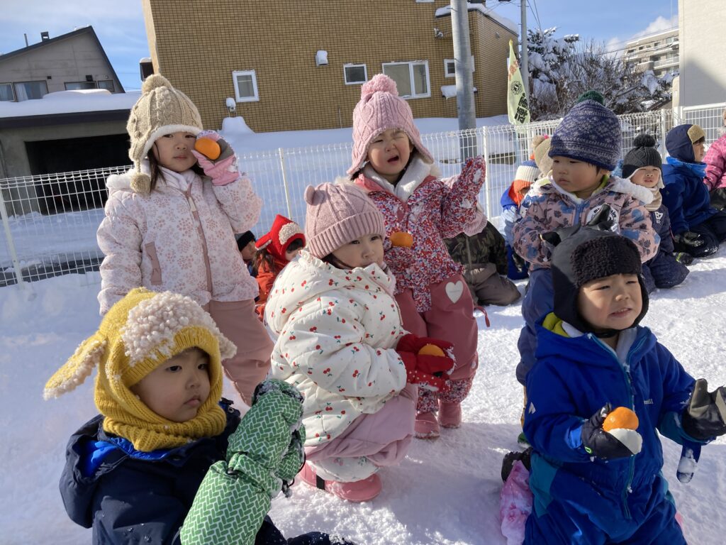 次はうさぎ組の”みかん探し”です!雪の中に隠れているみかんを、掘って探します🍊みかんを見つけると嬉しそうに教えてくれました♪