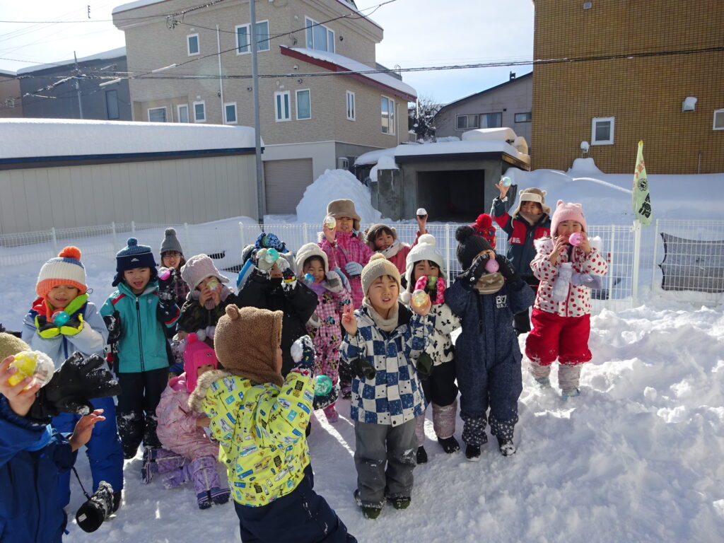 最後はそらぐみの”宝さがし”です!お部屋に届いていた、カメレオン探偵ドロンの手紙を読んで、雪の中からカプセルを見つけました