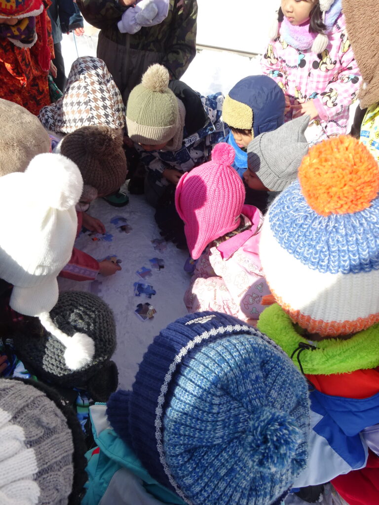 カプセルの中身はパズルのピースで、皆のパズルを組み合わせると答えが分かったようです♪無事、みかんを見つけた後は、ココアを飲んで一休みしました!