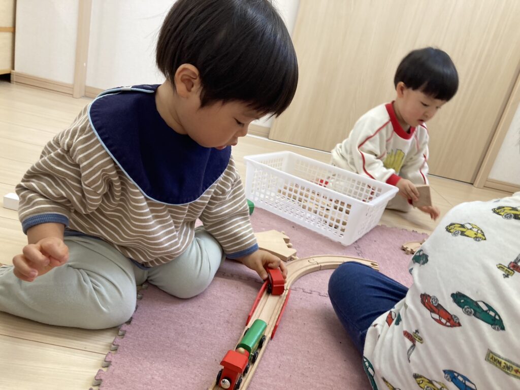 大好きな汽車で遊びます!うさぎ組のおもちゃなので、うさぎ組のお兄さん・お姉さんになったら毎日遊べるので楽しみです(o^―^o)ニコ