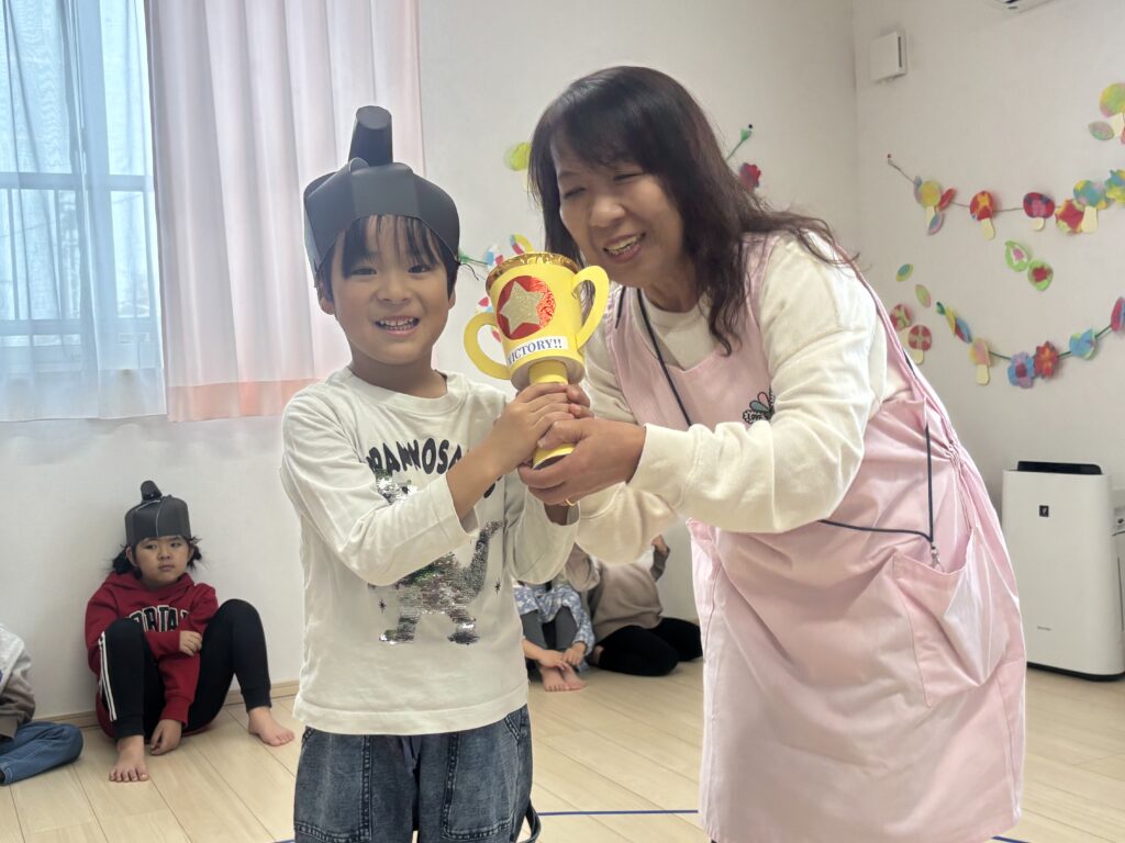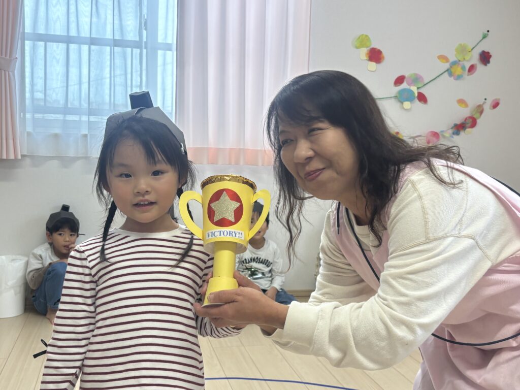 優勝した子には、園長先生から優勝トロフィーが贈られました!