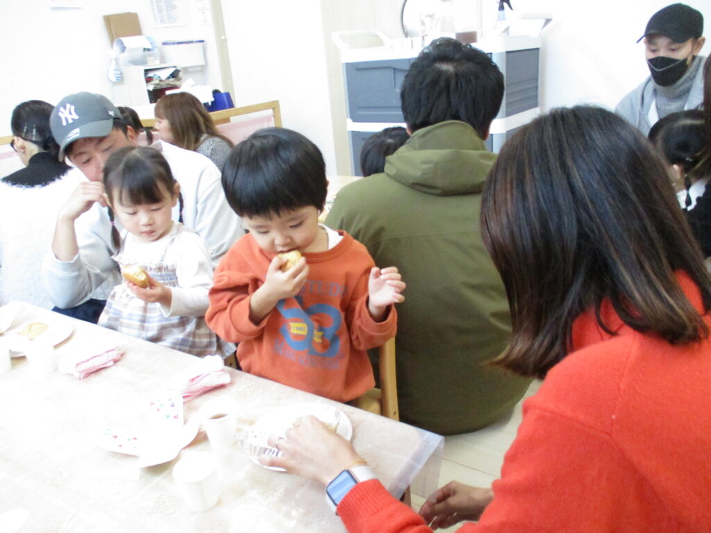 お父さん・お母さんと一緒に保育園のおやつで人気の『きなこケーキ』を試食しました!