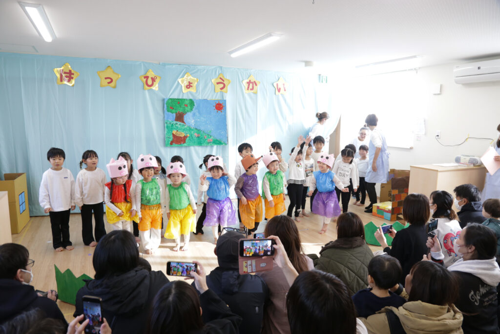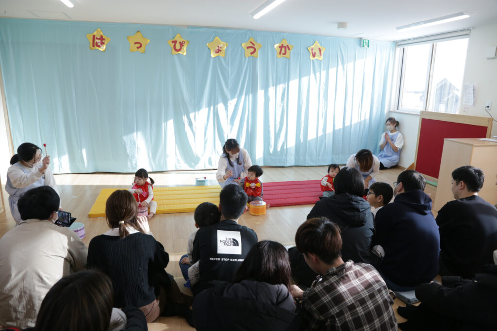 乳児さんは、いつも保育園で楽しんでいる手遊びや歌遊び、ダンスを中心に行いました☆