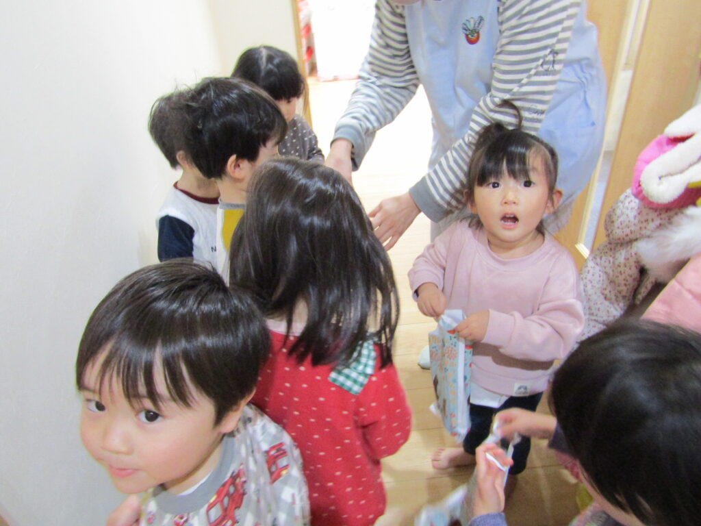 午睡明けには、サンタさんからプレゼントもありました♪