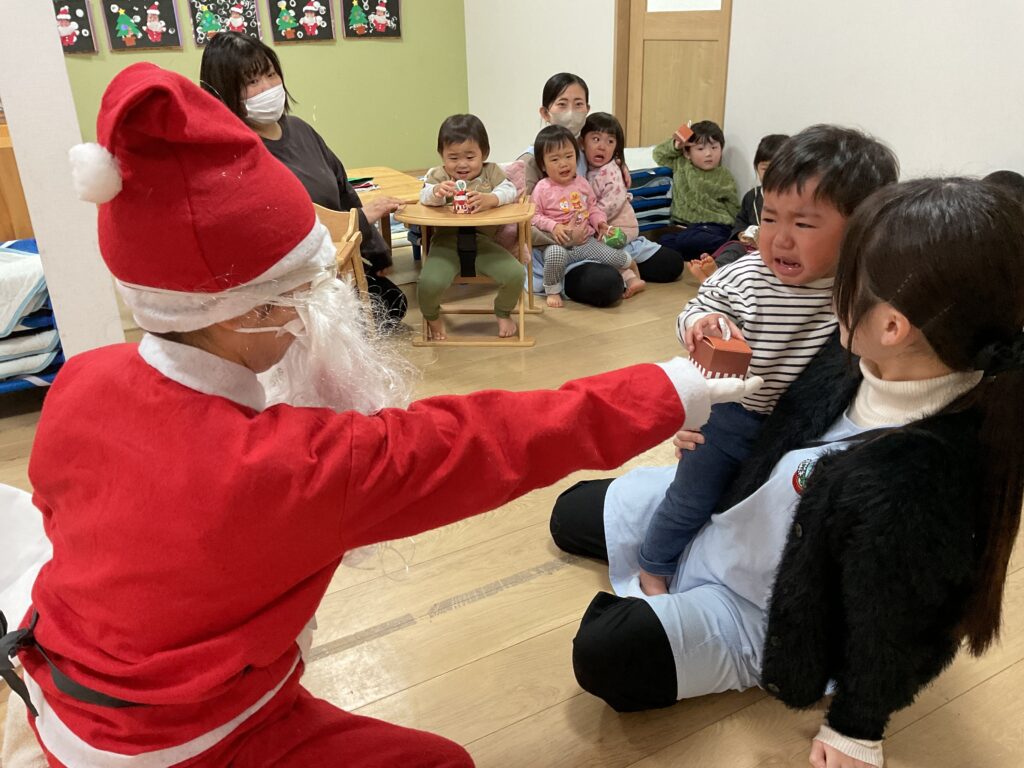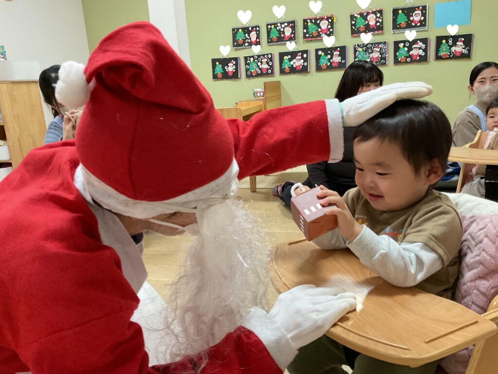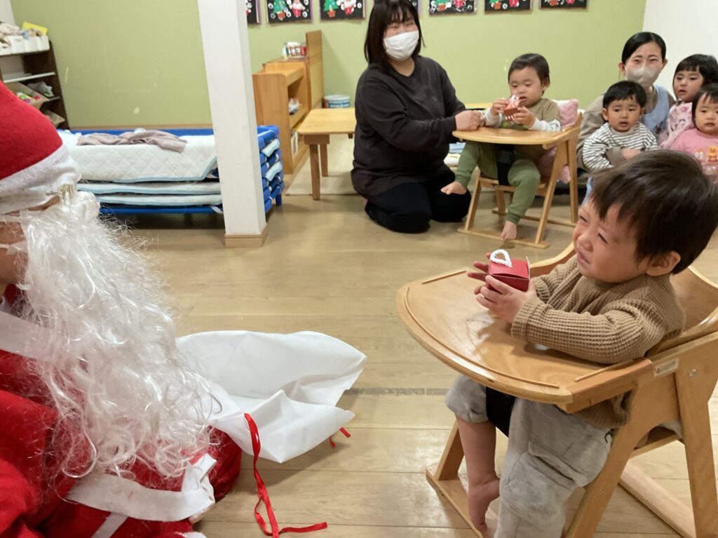 プレゼントをもらうと目を丸くしたり、にこっと笑顔を見せてくれたり、サンタさんの登場に少し驚いて、泣いてしまう姿も見られましたが、