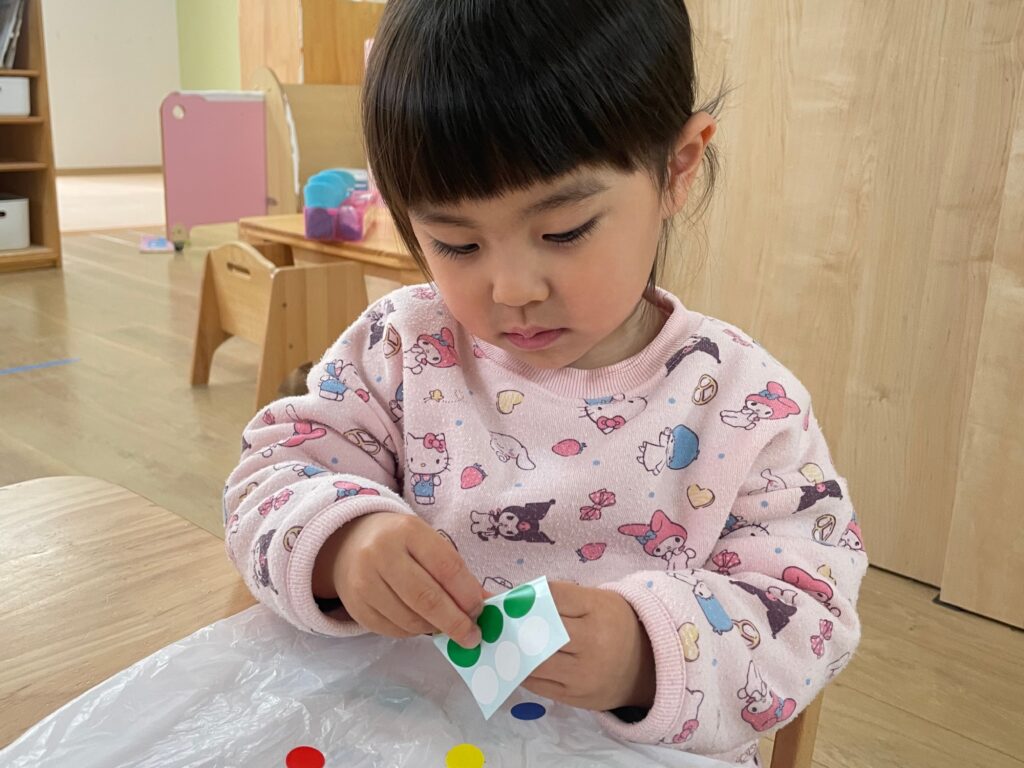 「ここ!」と指さしたり、シールが貼れると嬉しそうな表情を見せてくれる子どもたち✨