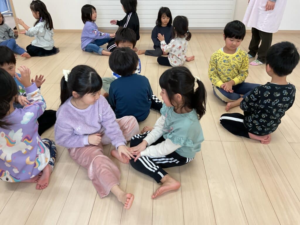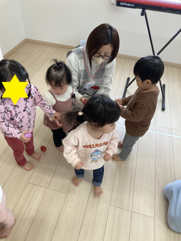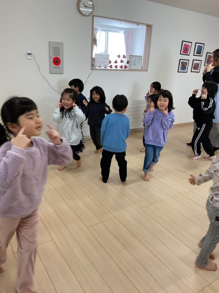 新年あけて、はじめてのリトミック。餅つきの歌や雪の歌を歌いながら、体を動かしていきました。