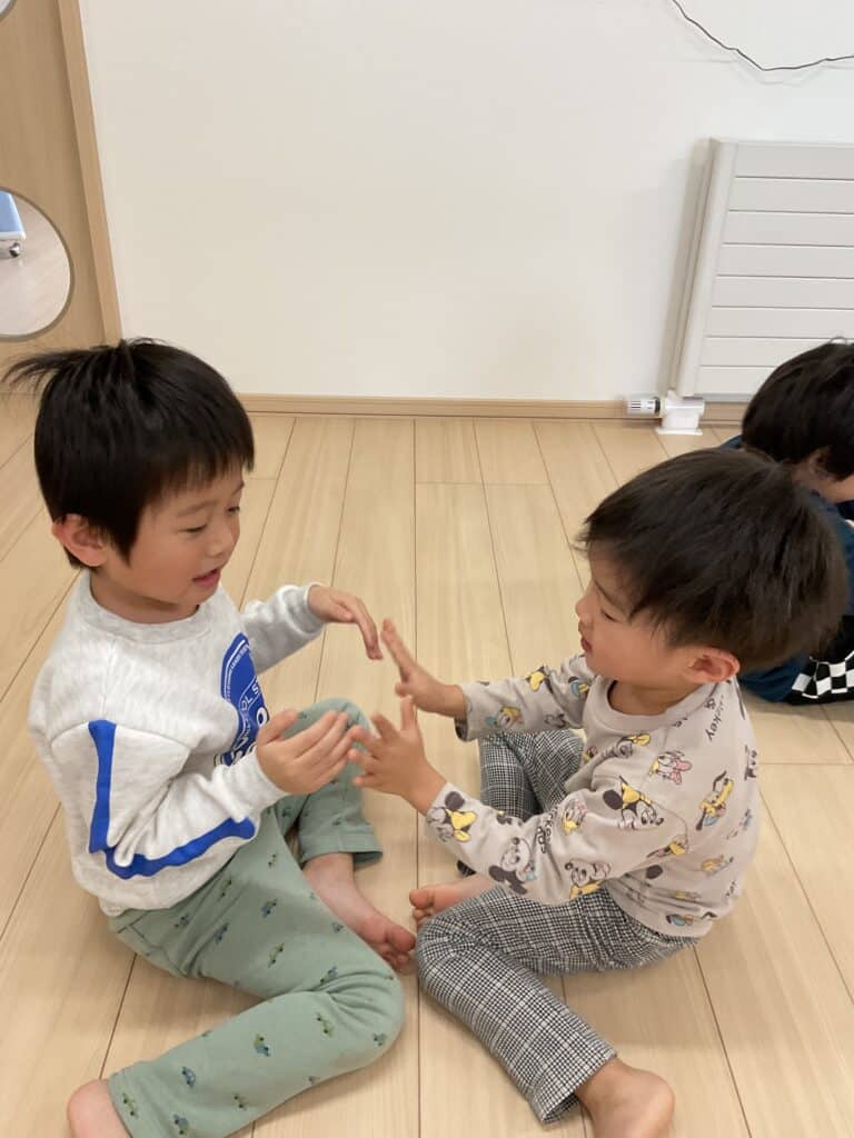 お餅つきの「ぺったん ぺったん」もリズムに乗せて挑戦です!!