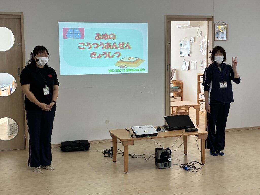 今年も冬の交通安全教室に西区交通安全運動推進委員会の方が来てくれました。