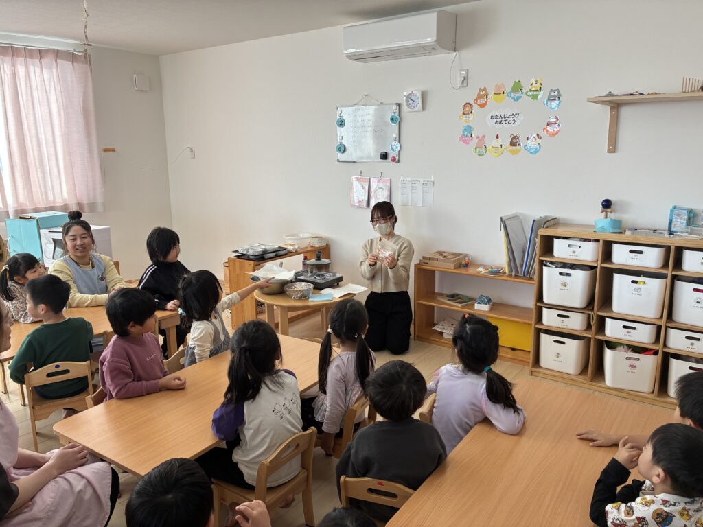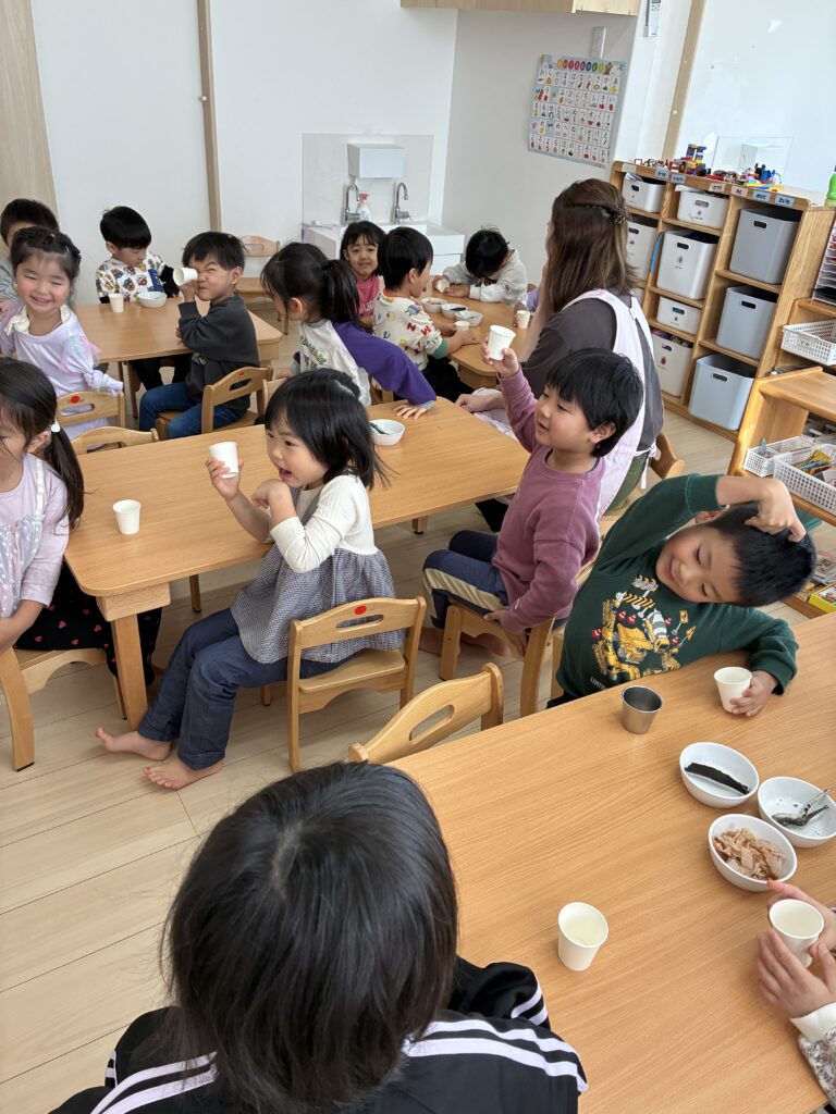 今日の食育は、みんなが給食で食べている出汁の味見です。