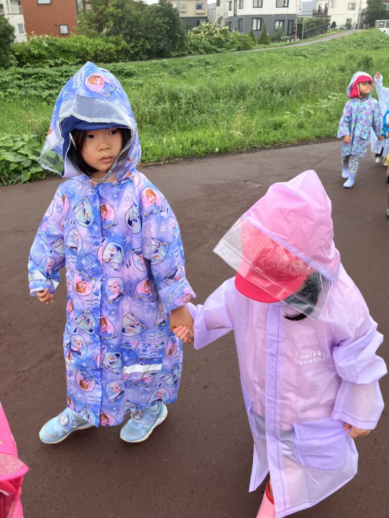 保育士と相談して、小雨の日におさんぽ行ってみようかとなりました